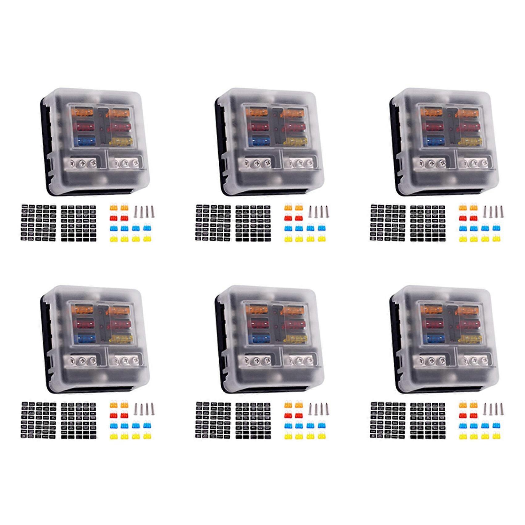 6X 6-Way Waterproof Fuse Block,with LED Indicator 12 Circuits with Negative Marine Fuse Box for DC 12/24V Car RV Truck