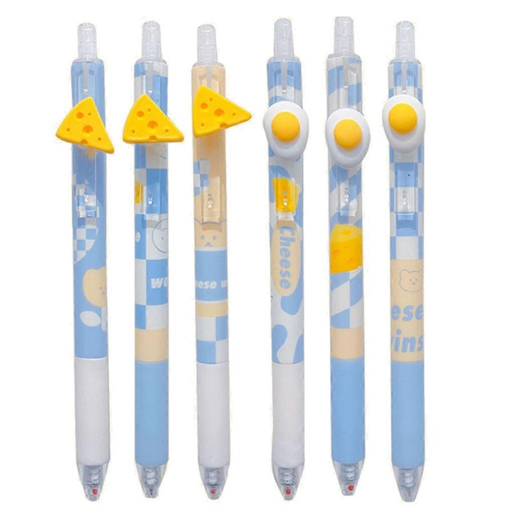 6x Cute Sea Salt Cheese Gel Ink Pens Retractable Neutral Pen 0.5mm Signature Pen