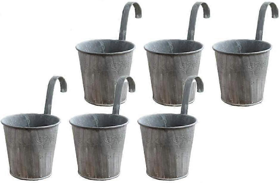 6x Vintage Iron Hanging Flower Pots with Hooks for Indoor Outdoor Home Decoration Balcony Garden Grid