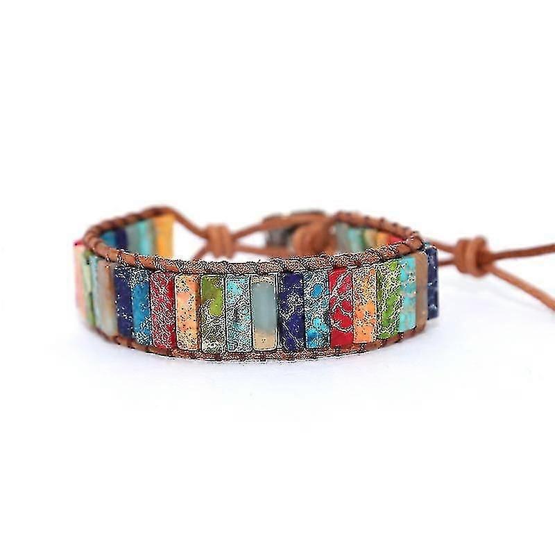 7 Chakra Bracelets Handmade Colorful Bracelet Chakra Beads Stone Leather Wrap Bangle