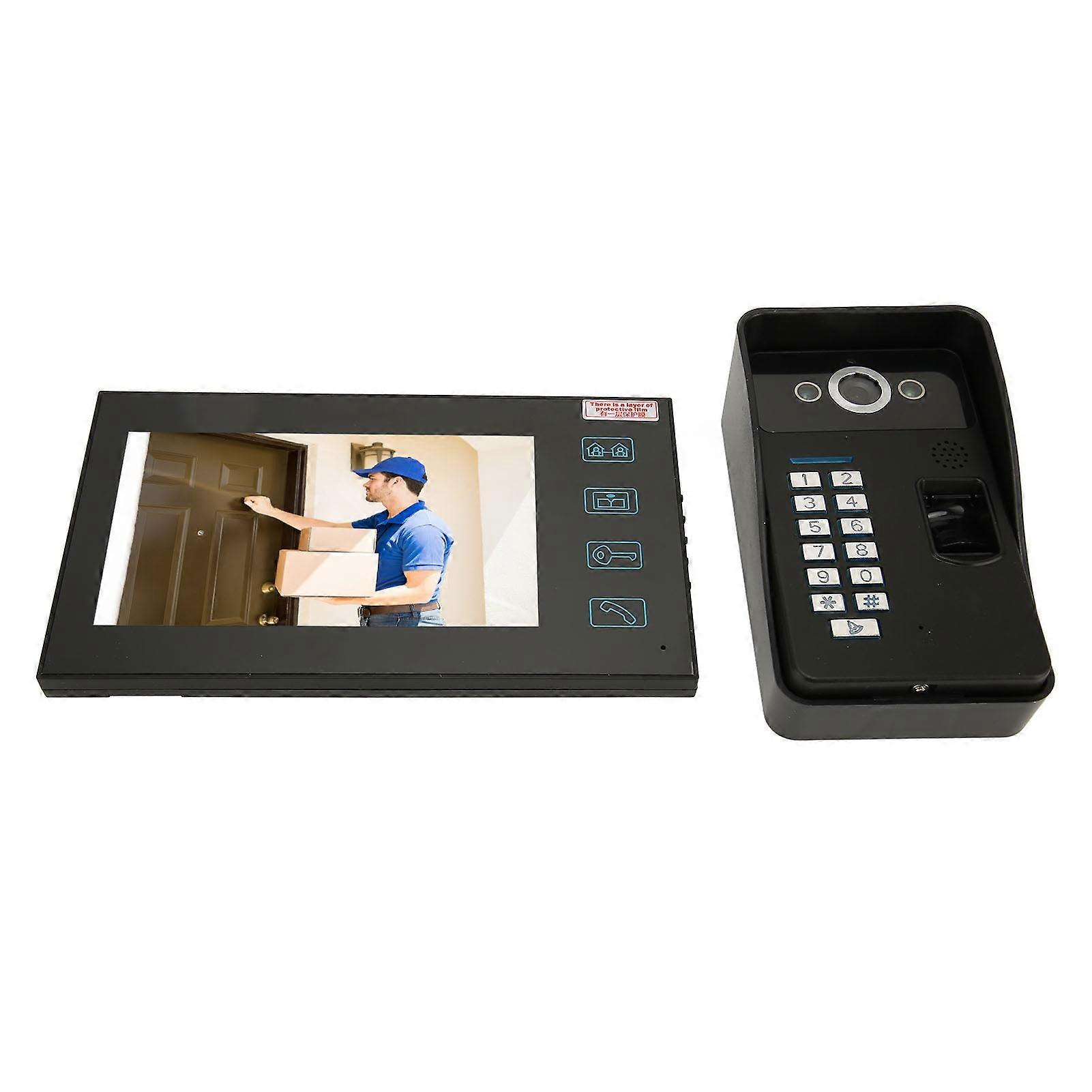 7 Inch Video Door Phone Doorbell 1000TVL Camera TFT Monitor Night Vision Phone Doorbell Intercom System for Office 100‑240V UK Plug Item Type: Video Door Phone Doorbell Material: ABS,Aluminum Alloy Camera: CMOS 1000TVL LCD:7 Inch TFT 480x234 Call Duration: 60S Monitoring Duration: 120S Camera Display Angle: 92 Degrees LED:6 Pcs Night Visual Distance: 3 Meters User Capacity: 1000 User Cards, 1 Password and 1000 Fingerprints. Type of Card: RFID Compatible Card 125khz Reading Range: 10-30mm Wiring: Electric Lock, Exit Button