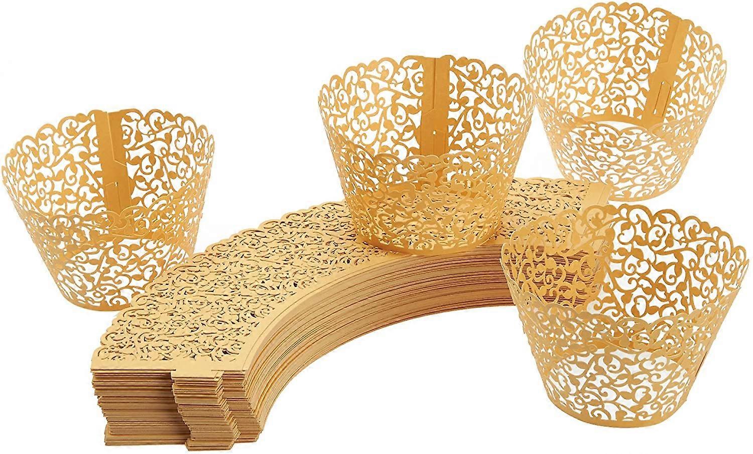 7-Piece Decorative Laser Cut Cupcake Liners Weddings, Birthdays, Christmas, Lace Cupcake Wrappers, Gold