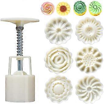 7 Pieces Bath Bomb Mold Set Includes 1 Pieces Bath Bombs Press and 6 Pieces Different Stamps for Making Bath Bombs, DIY Moon Cake Mold Kit