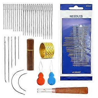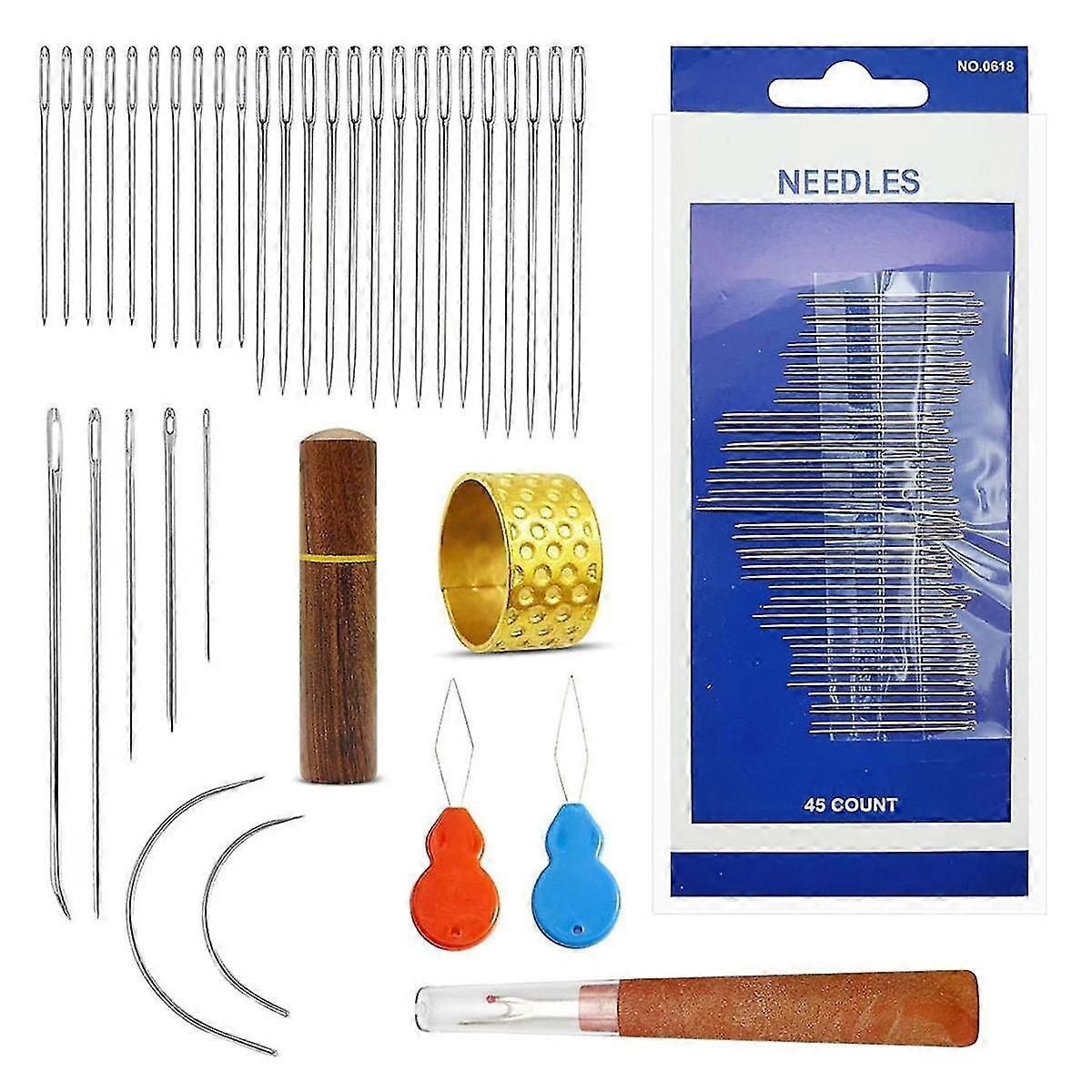 77 Pcs Hand Sewing Needles, Large Eye Needles For Hand Sewing, Leather Sewing Needles With Wooden Case For Stitching
