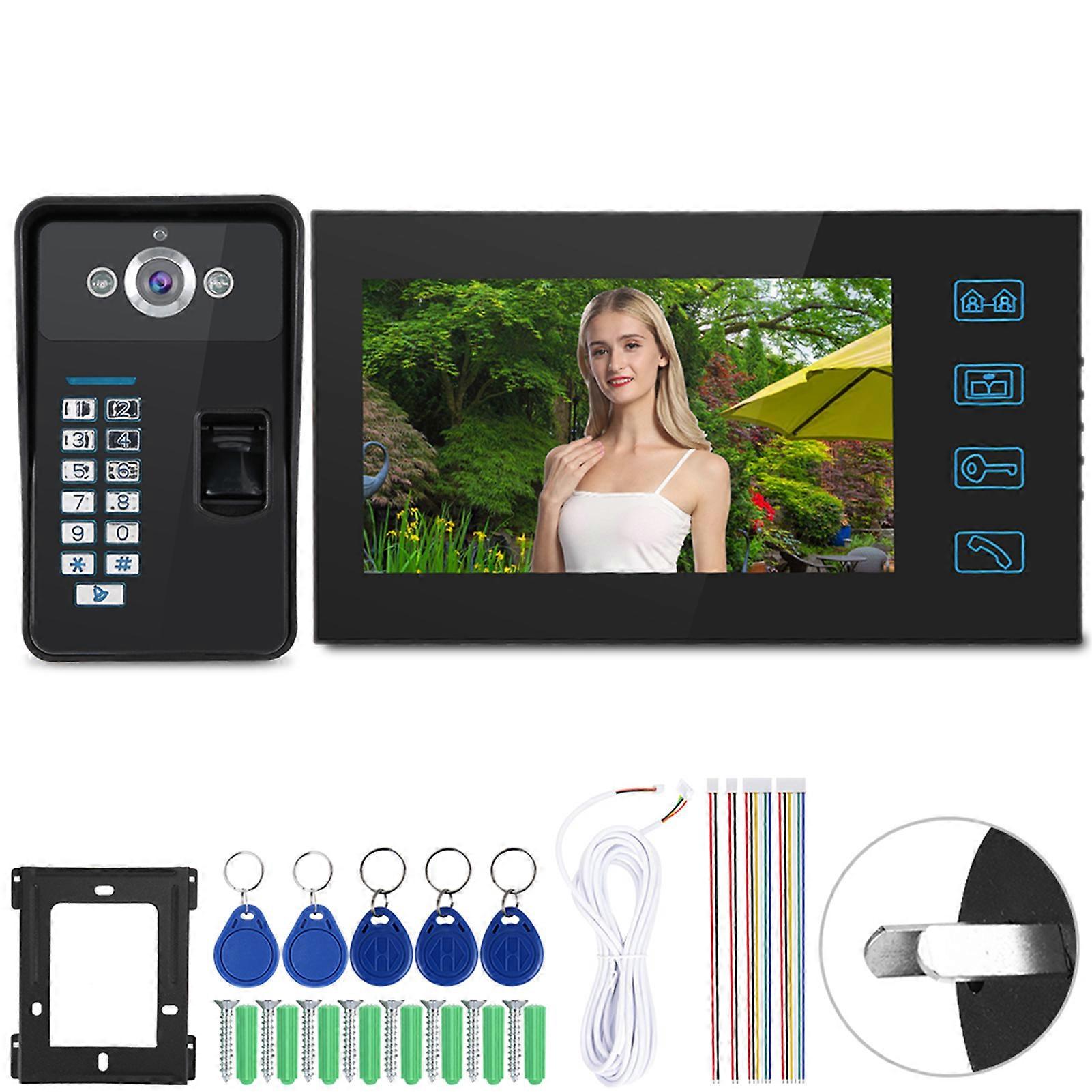 7inch Tft Lcd Wired Fingerprint Rfid Card Visual Video Intercom Security System Doorbell 100-240vau Plug