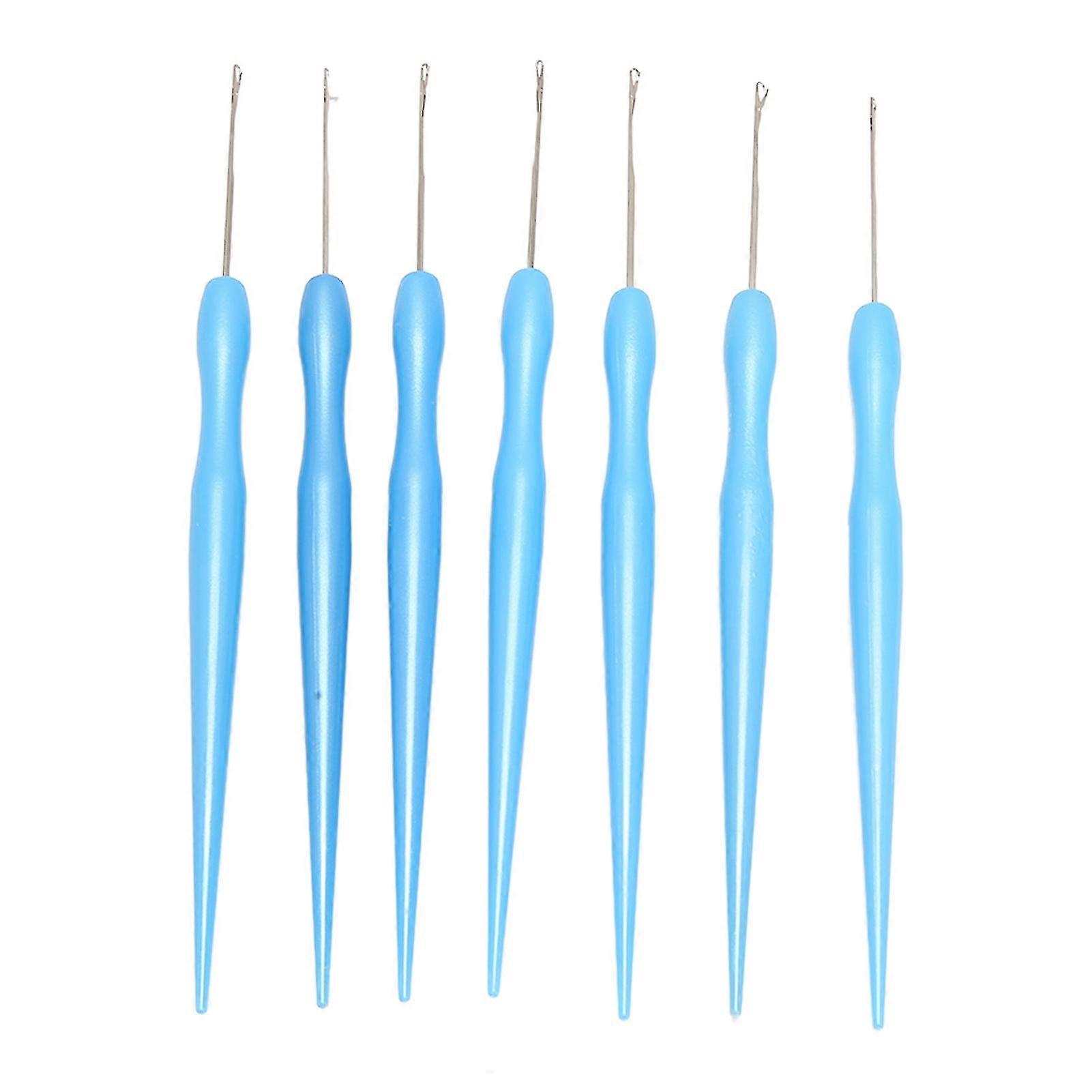 7pcs Latch Hook Crochet Needle Blue Exquisite Simple Operation Crochet Hook Hair with Plastic Handle for Daily Use