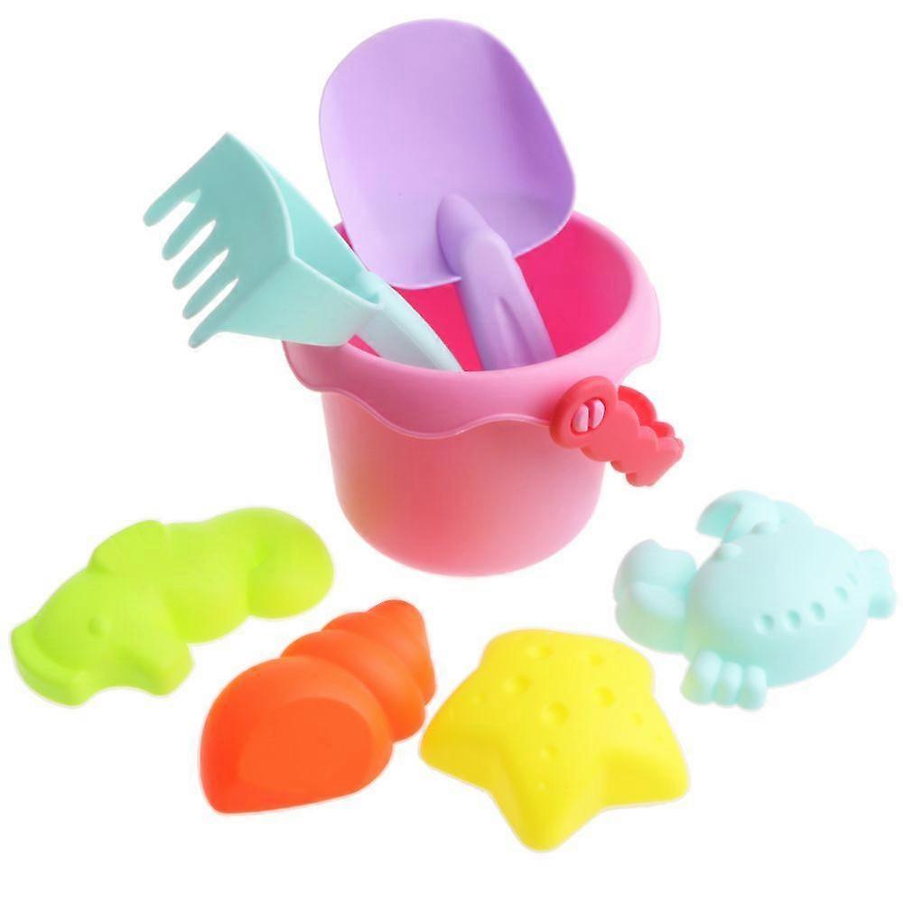 7pcs Children Beach Sand Toys Set Sandbox Toys with Round Bucket Sand Rake b