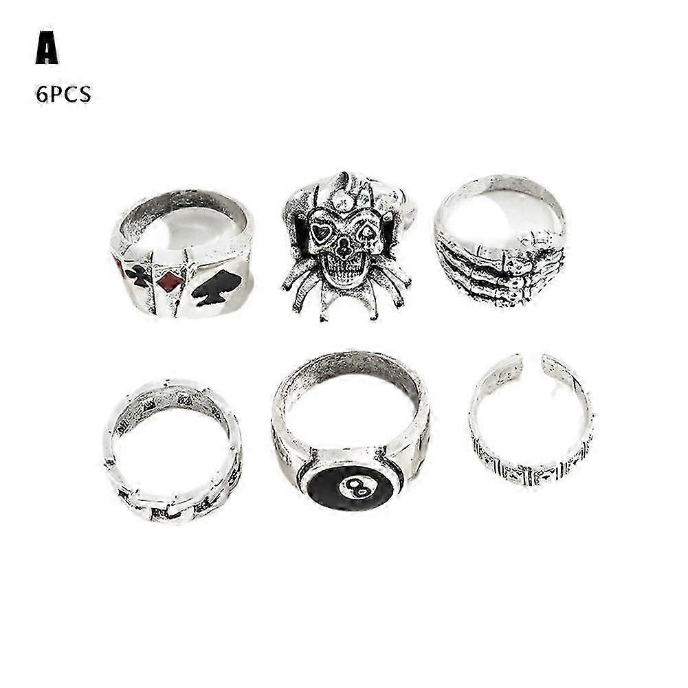 7pcs/set Silver Rings for Women Black Zircon Spade Oil Drop Heart Ring Set