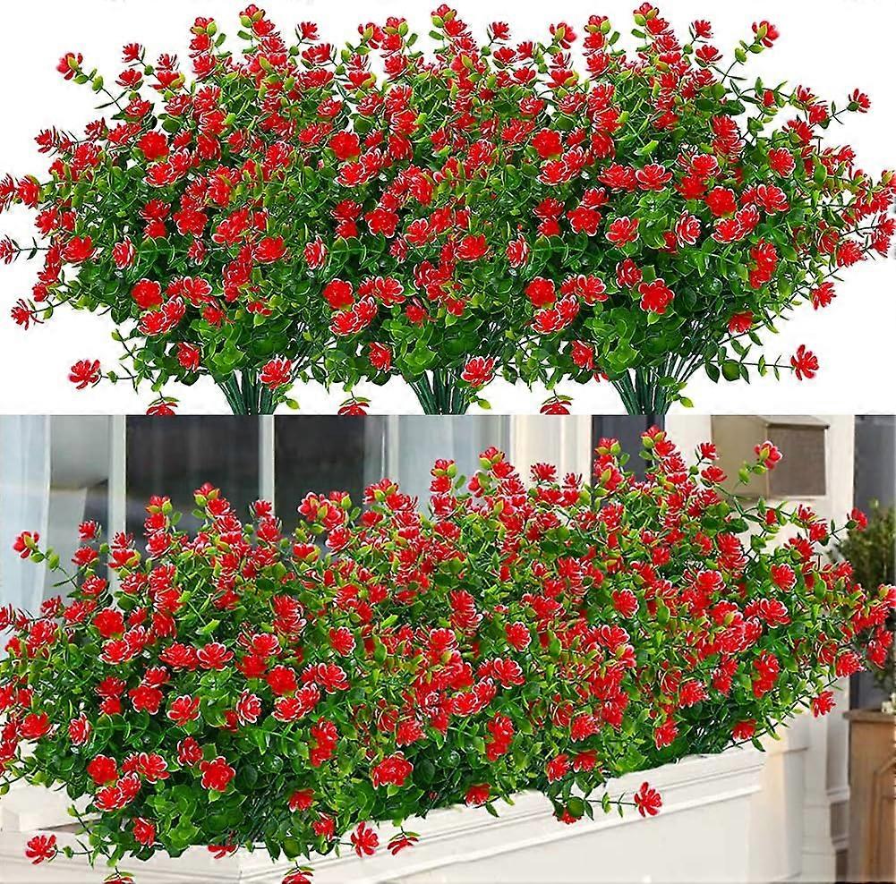 8 Bundles Outdoor Artificial Boxwood UV Resistant Fake Stems Plants, Faux Plastic Greenery for Indoor Outside Hanging Plants Garden Porch Window Box H