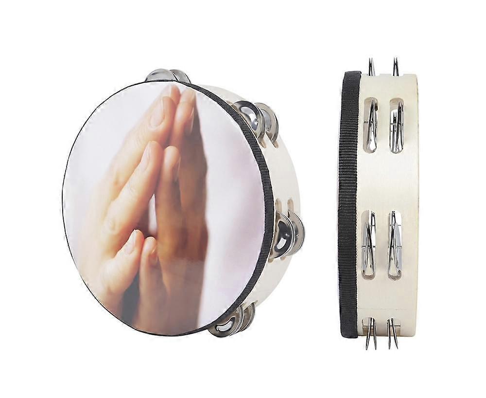 8 Inch Double Row Metal Jingles Tambourine Handbell Hand Drum Percussion Toy