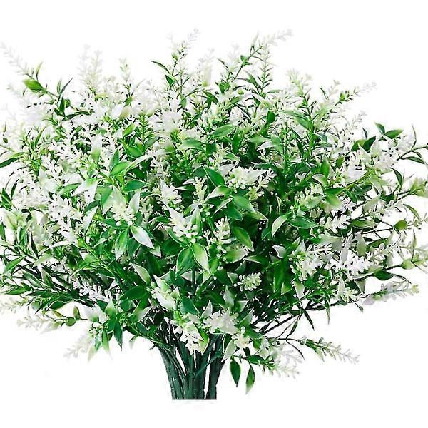 8 Bouquets Artificial Lavender Plants Outdoor UV Protection Fake Flowers Garden Porch Decoration(white)