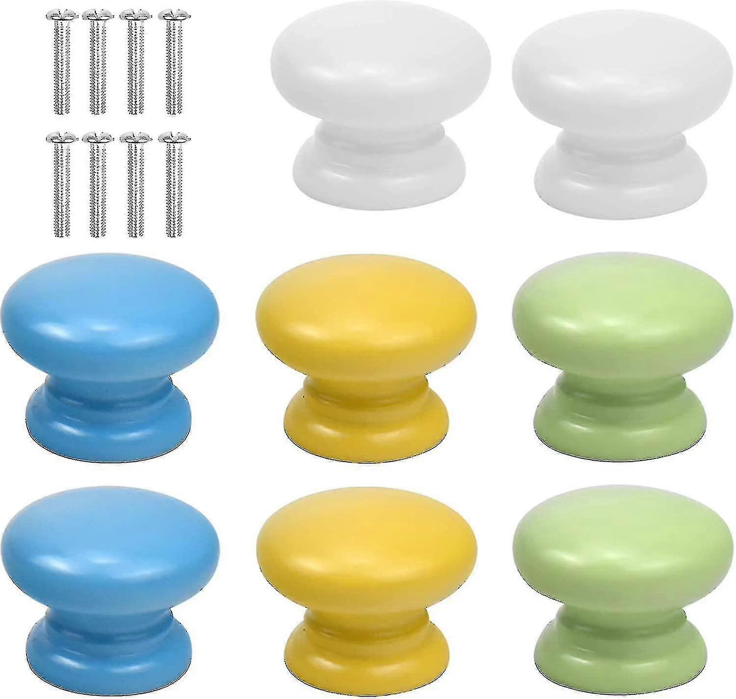 8 Pcs Colorful Cabinet Door Knobs With Screws, Wooden Round Door Knobs, 33mm Cabinet Knobs Furniture Knobsw