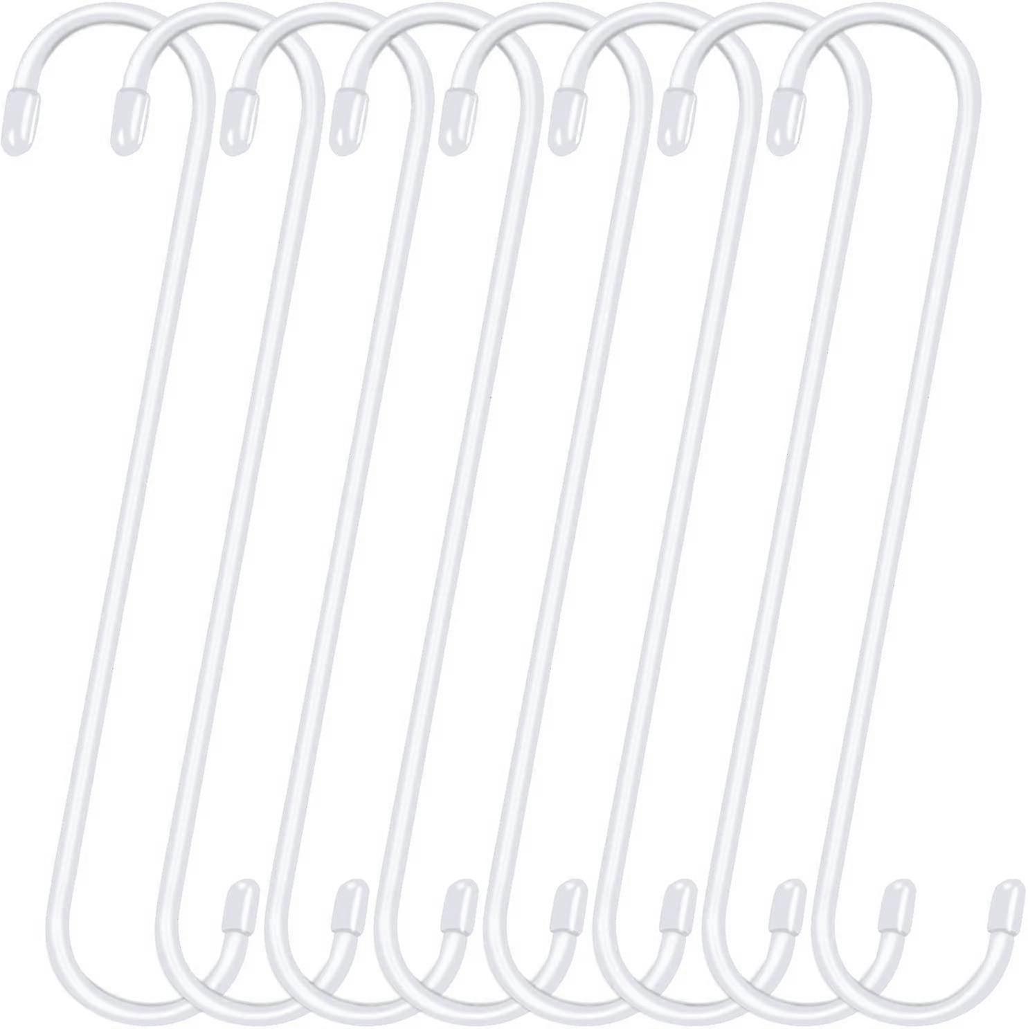8 Pack 10 Inch Extra Large S Hooks For Hanging Plant Outdoor, White Long S Shaped Extension Hooks For Kitchenware, Pergola, Closet, Flower Basket, Bir