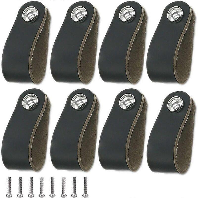 8 Pieces Leather Handle, Soft PU Leather Door Handle with Screws, Suitable for All Kinds of Cabinet Doors and Drawers (Black)