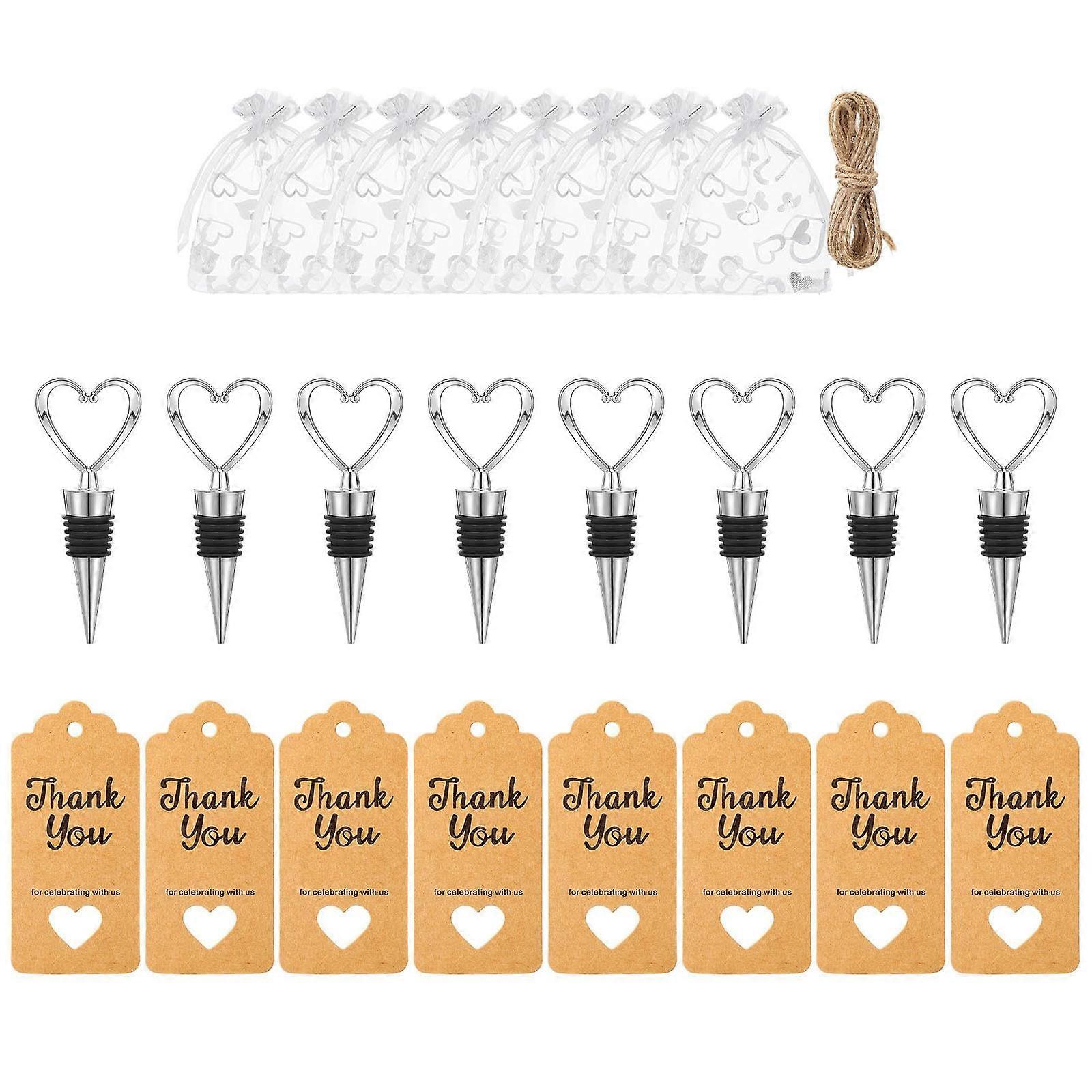 8Pcs Heart Shape Bottle Stopper with Organza Drawstring Pouches Hanging Label For Wedding Bridals Shower Birthday Party Multicolor