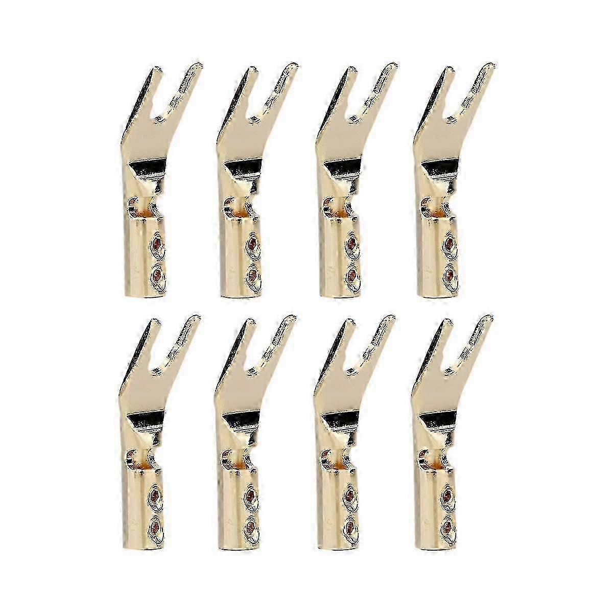 8PCS HIFI Banana Y Spade Y Gold Plated Pure Copper Screw Fork HiFi Speaker Spade Connector Plugs-Co
