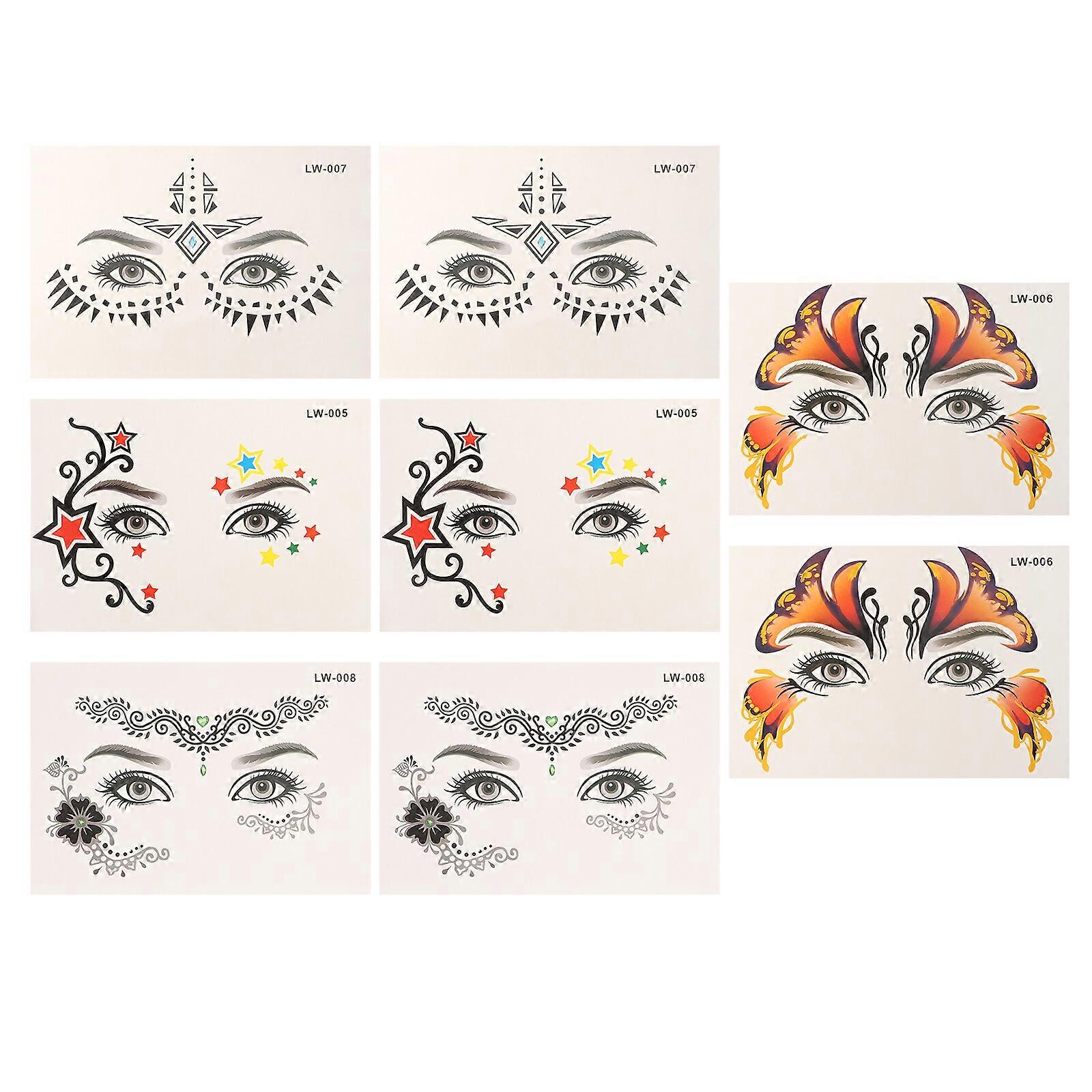8 Pcs Face Temporary Tattoos Halloween Women Tattoos Stickers Eye Tattoos