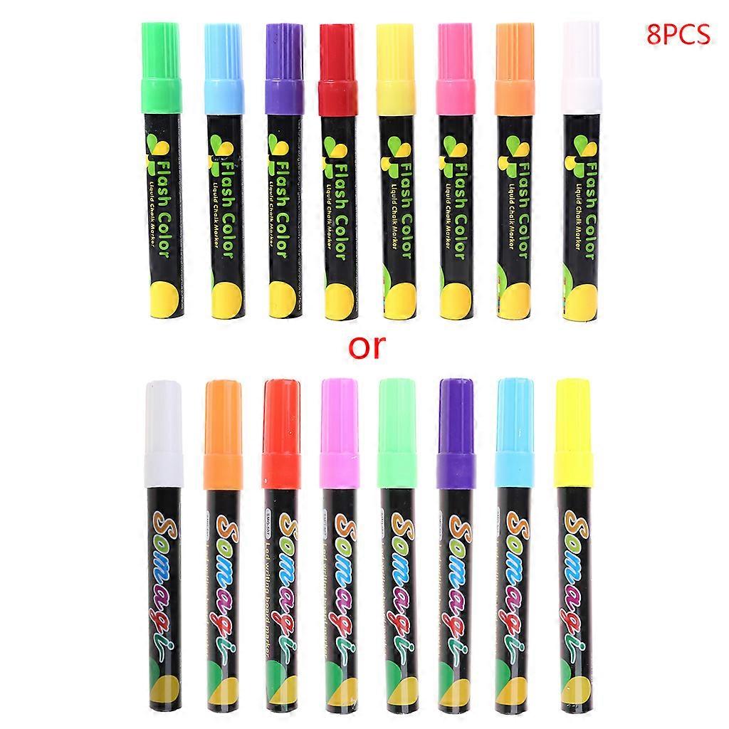 brand new and high quality Feature: 8 Pieces bright and vivid color Liquid Chalk Marker, smooth writing These liquid chalk markers use unique ink that brings colors to life. Our fluorescent colors will spark your creativity. Children will love expressing themselves using these bright and colorful markers on a variety of surfaces including mirrors, for windows, and other non-porous surfaces. Perfect for use on menu boards, chalkboard, House for Windows, Car for Windows, Plastic, Metal and more. Safe, non-toxic, and easy to clean, wet or dry, using a damp cloth or a dry erase marker. Perfect for restaurants, storefronts and bars looking to attract customers with vibrant, eye catching bistro boards, restaurant menu boards, store for windows, etc. Liquid Chalk only, other accessories demo in the picture is not included. Usage: 1. When use at the first for time, Please shake the pen well (with cap on) for 15 seconds to mix the powder and the liquid. 2. Then keep pushing down the nib for more than 15 seconds until nib fills with ink. 3. After use replace the cap tightly and store in horizontal position. How to Clean: Simply use any damp cloth or wet wipes to wipe off if it is dry, No need to use any chemicals or cleaning products. Specification: Item Name: Liquid Chalk for Shell Material: Plastic Pen Length: app.14cm/5.51in Tip Diameter: 4mm Color: 8 Colors, As pictures shown Quantity: 8 Pcs Note: Please allow 0-1cm error due to manual measurement. pls make sure you do not mind before you bid. Due to the difference between different monitors, the picture may not reflect the actual color of the item. Thank you! Package includes: 8 x Liquid Chalk