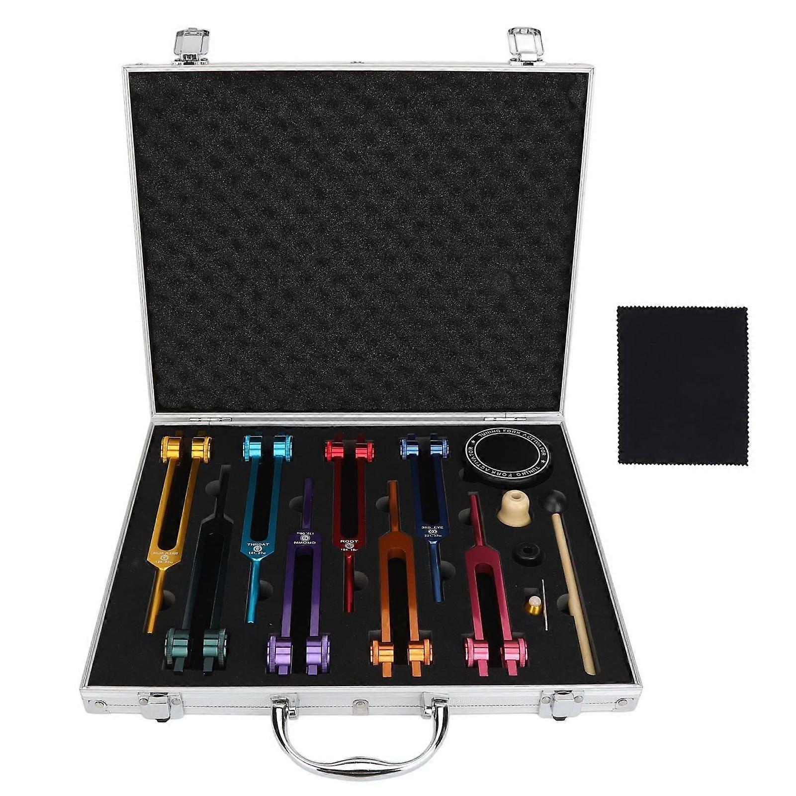 8 Colors Tuning Fork Set Aluminum Alloy Multi Frequency Tuning Forks with Hammer for Daily Relaxing Entertainment
