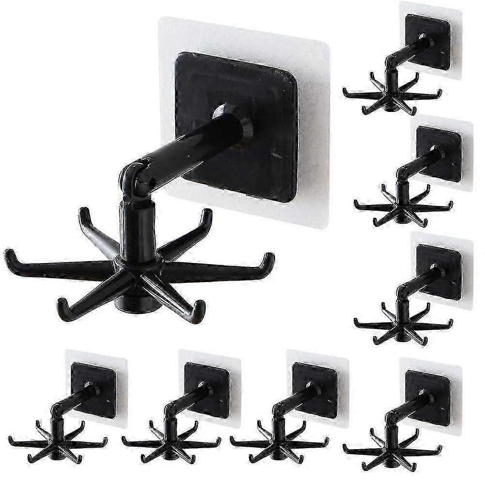 8-Pack 360° Rotating Folding Hooks, Self-Adhesive 180° Flip Waterproof Utility Hooks (Black)