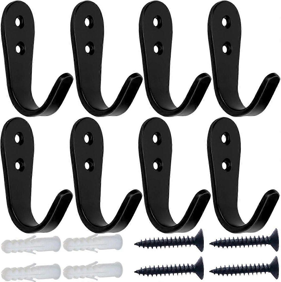 8 Pcs Black Coat Hooks for Wall, Heavy Duty Hooks for Hanging Coats No Rust Hooks Wall Mounted with Screws for Key, Towel, Bags, Cup, Hat Indoor and O