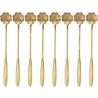 8-Piece Gold Stainless Steel Flower Spoon Set, Κουταλάκια Καφέ/Τσαγιού με 8 Σχέδια, Creative Sugar/Stirring Spoons (Qiuying)