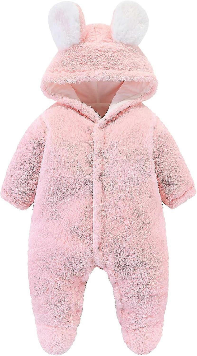 80cm All in One Infant Baby Winter Jumpsuit Cute Bear Plush Cotton Lining Snow Suit Outfit Super Warm Hooded Footed Romper Bodysuit Coat Onesie Outwea