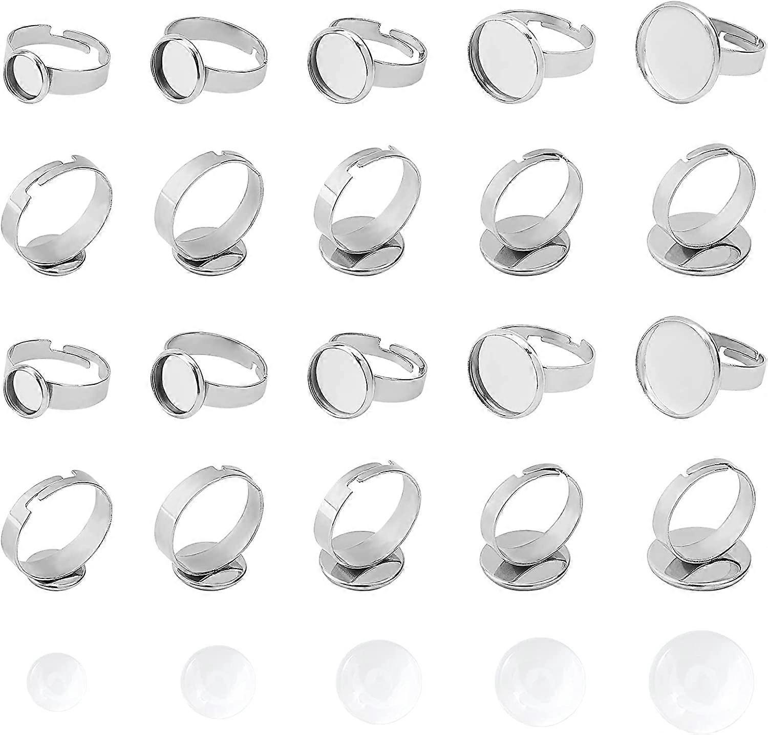 8/10/12/14/16mm Adjust Ring Base 20 Sets Stainless Steel Bezel Rings with Half Round Glass Cabochons Finger Rings Components for Ring Making Stainless