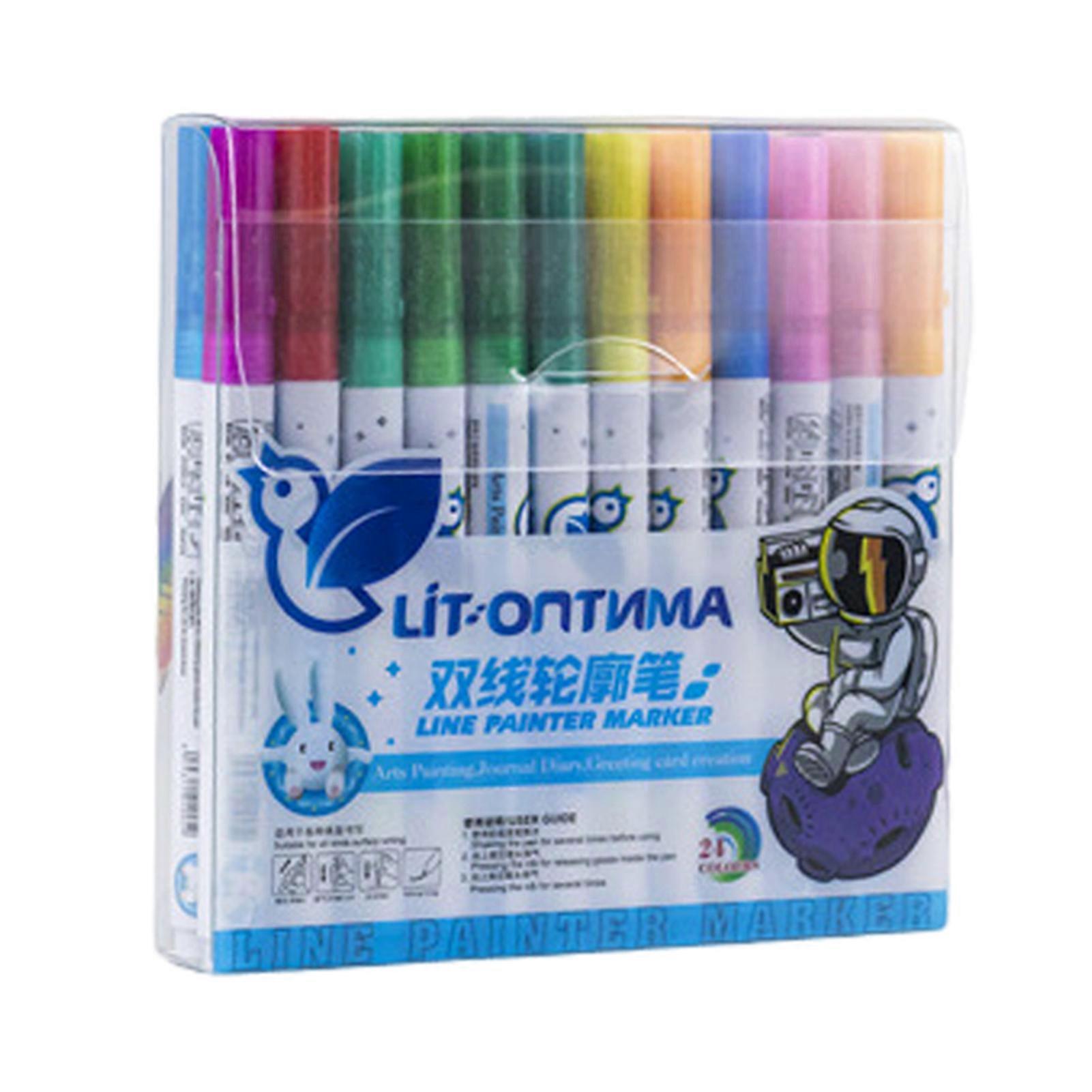 8/12/24Pcs Outline Marker DIY Gift Tag Greeting Card Art Projects Kids Drawing Painting Doodle Double Line Glitter Liquid Mark Pen Kit