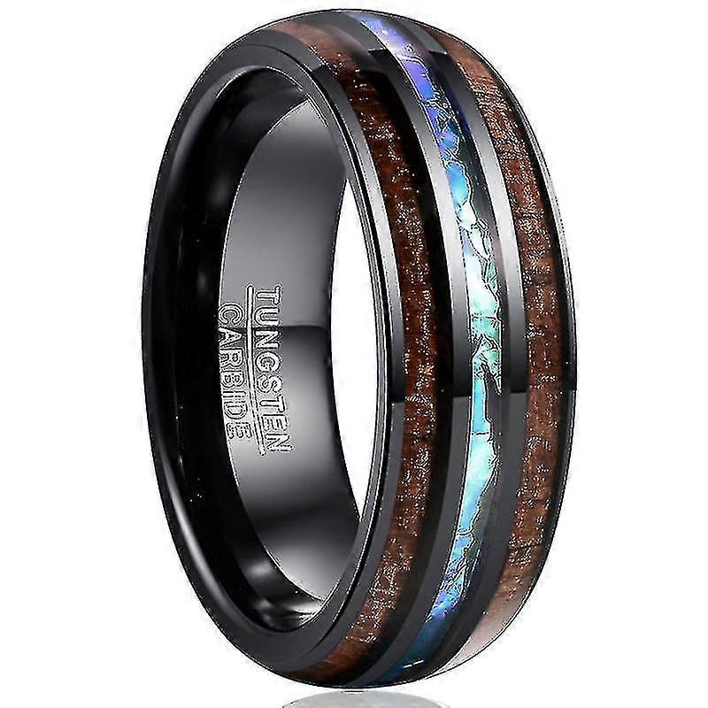 8mm Tungsten Rings For Men Women Hawaiian Koa Wood Inlay Dome Blue Center Wedding Bands Comfort Fit