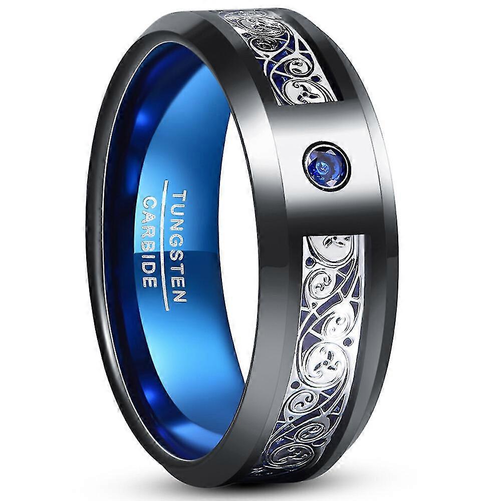 8mm Wide Tungsten Steel Ring Plating Black Inlay Triple Spiral Pattern+blue Zircon Men's Tungsten Carbide Ring TA