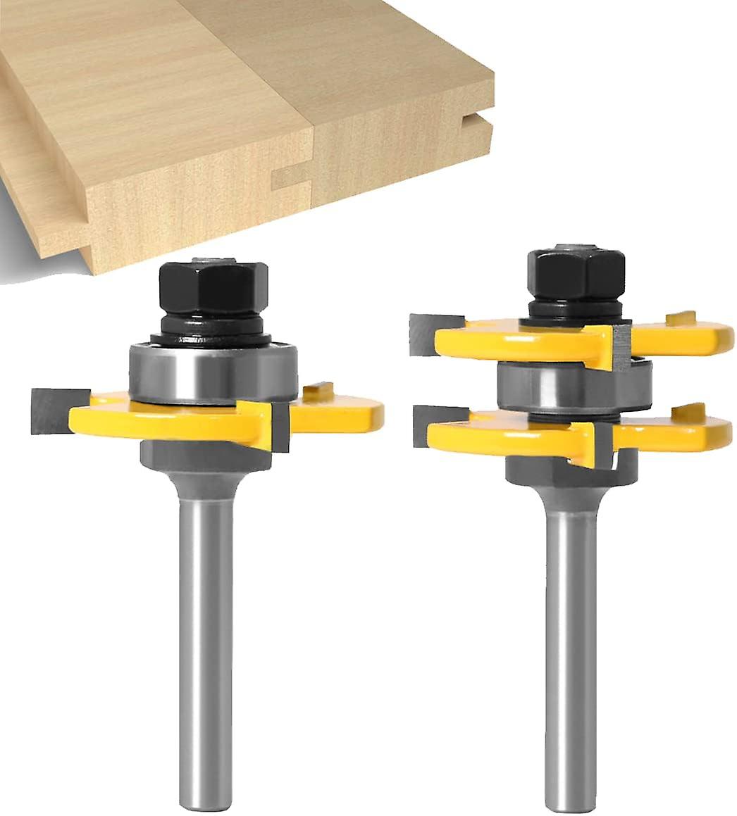 8MM Shank Matched Tongue and Groove Router Bit Set 3 Teeth T Shape Wood Cutter Cutting Woodworking Tool (8MM) T-Audacity