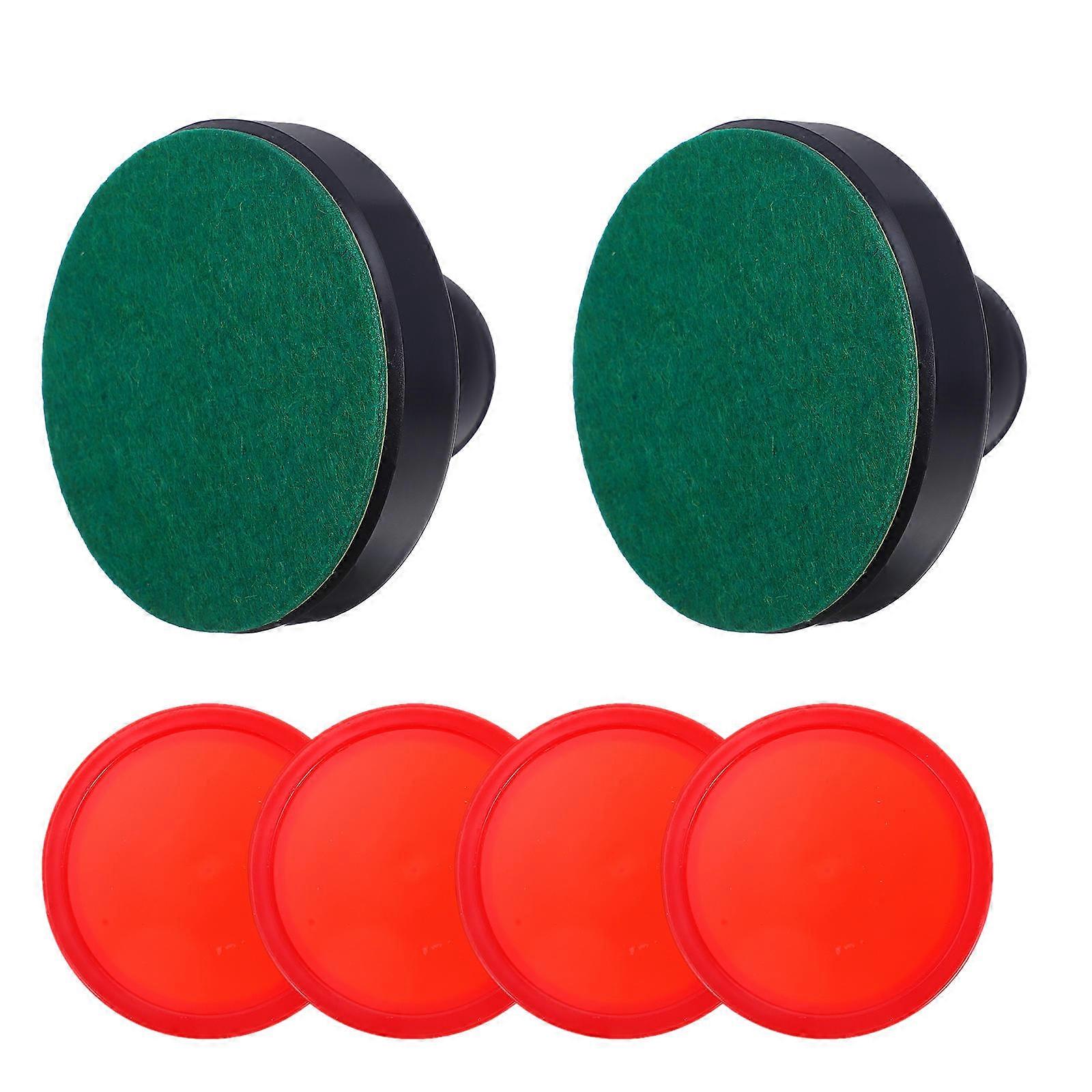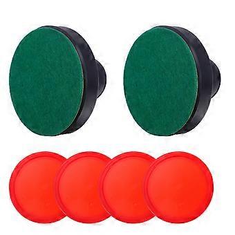 Description Many people say that the pucks they bought are too small or too large. This set fits most standard air hockey tables. Take your air hockey game to the next level. Made from material. Hard and not brittle at all. The striker felt bottom is provides a fast easy gliding action while protecting the table surface. Sure to bring that fast action new table feel to your competitive games. Feature - Color: Dark blue. - Material: Plastic. - Size: 7.6x7.6x4.1cm. - Ergonomical design paddles provide a comfortable feel and the overall game experience even during vigorous table play. - This pack of pucks & sliders are perfect for replacing any old worn out or lost air hockey equipment! - A quick and easy solution to all those lost pucks that keep you from playing the game you love. - A must for leisure sports in any game room. These replacements will sure make competitive matches a thrill.Package list: 2 x Push handle 2 x flannel 4 x ice hockey