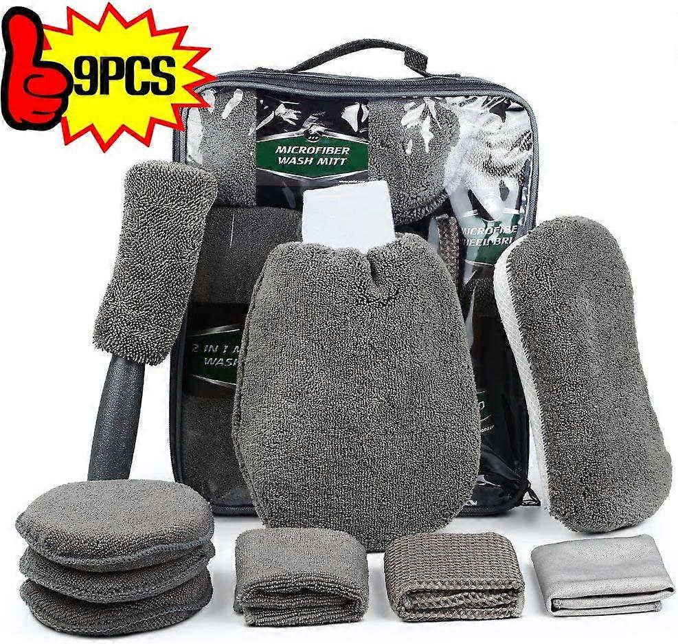 9 Pieces Professional Car Cleaning Tools, Car Automobile Cleaning Cloths Set, Wash Kits Microfiber, Auto Washset Auto Cleaner Set, Car Vent Brush