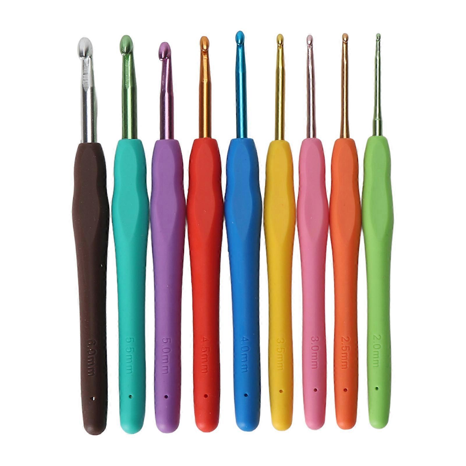 9 Pcs Crochet Hook Set Multicolor Aluminum Ergonomic Soft Grip Crochet Hook Knitting Needles