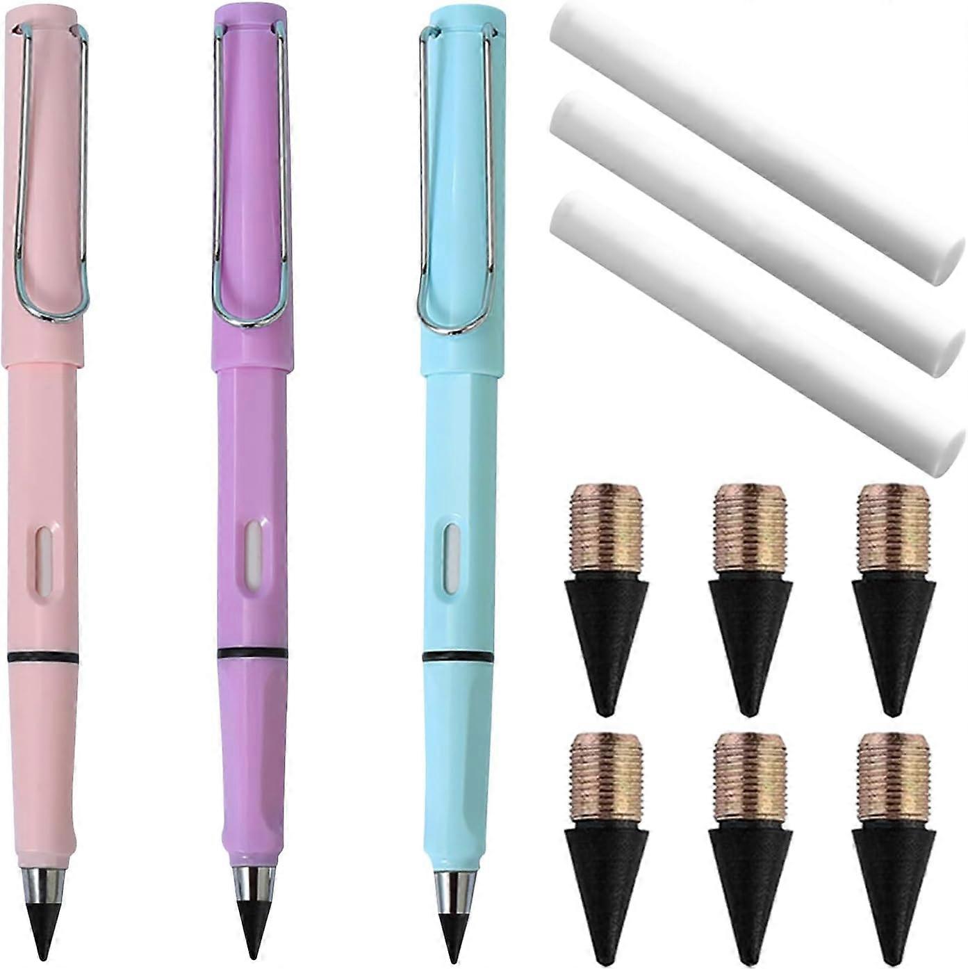 9 Pieces Portable Erasable Inkless Pencil Set (3 Pencils + 6 Nibs) Magic Cute Forever Pencil for Kids Writing Sketching