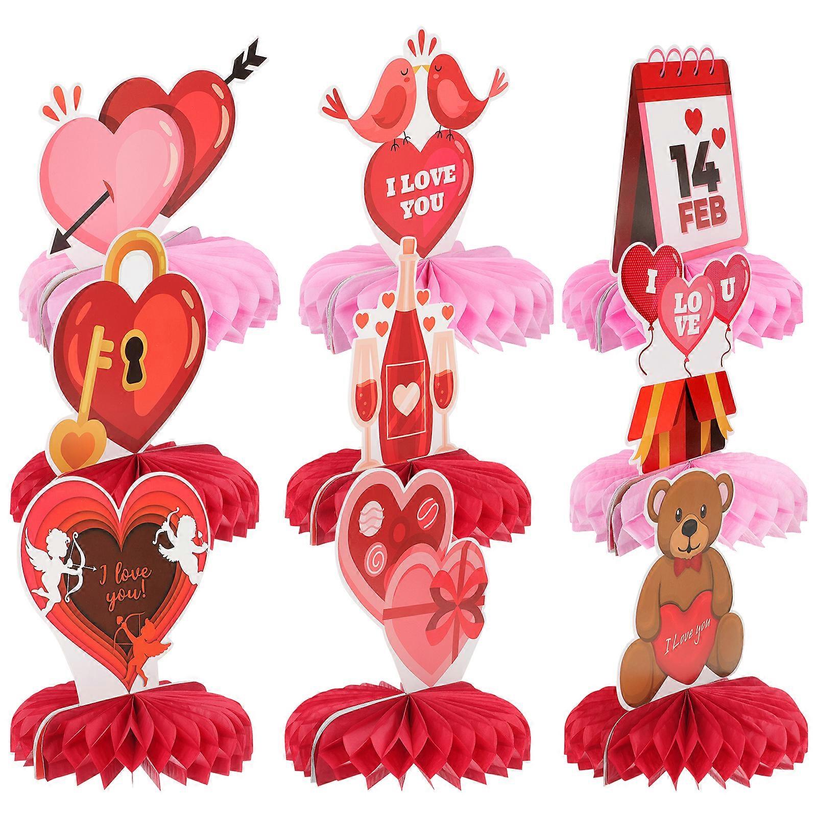9 PCS Wedding Ornament Valentine Day Favors Valentines Day Table Signs Heart Honeycomb Centerpieces