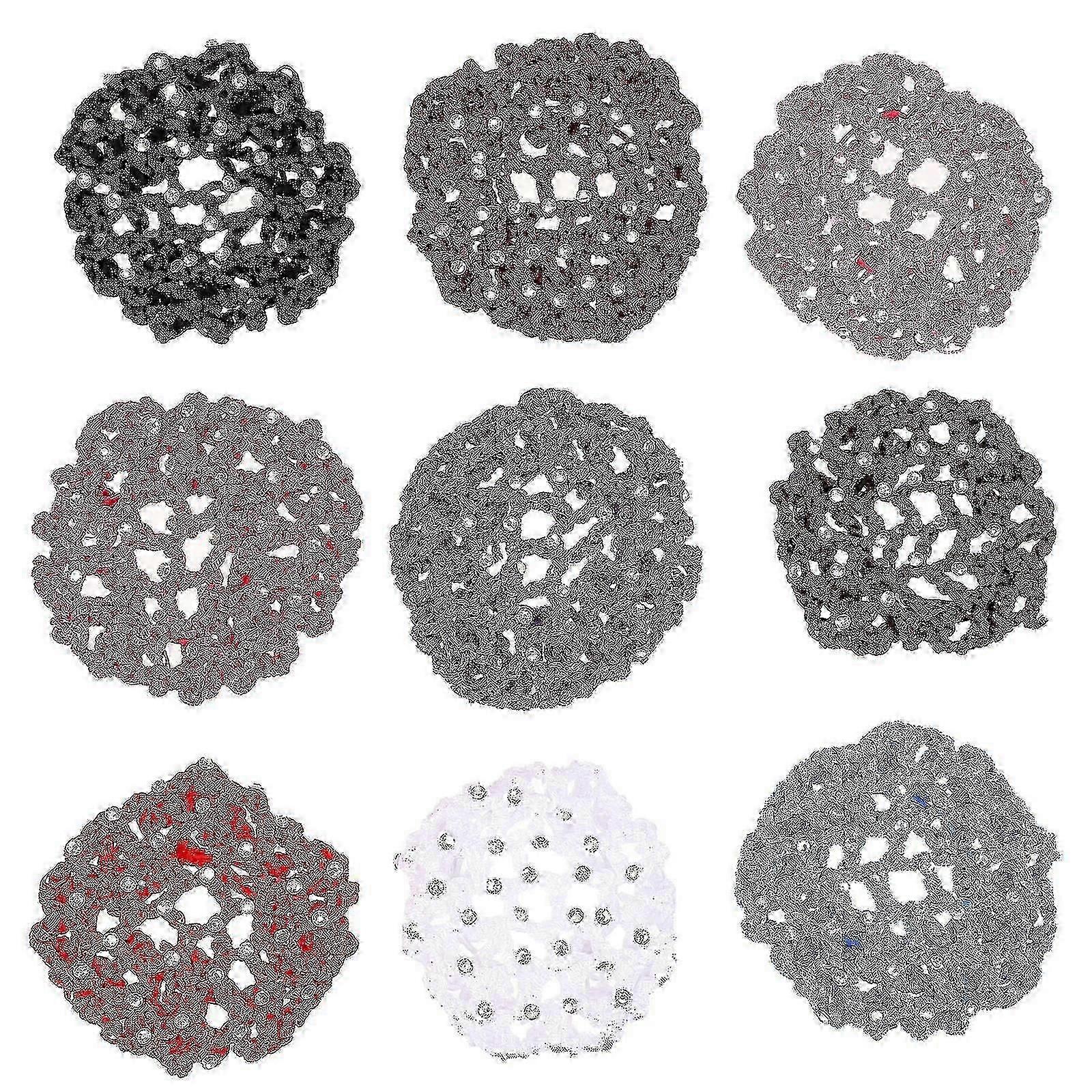 9 Pcs Rhinestone Hair Compact Bun Cover Net Hair Snood Crochet Hair Net Rhinestones Hair Crochet Bun Cover