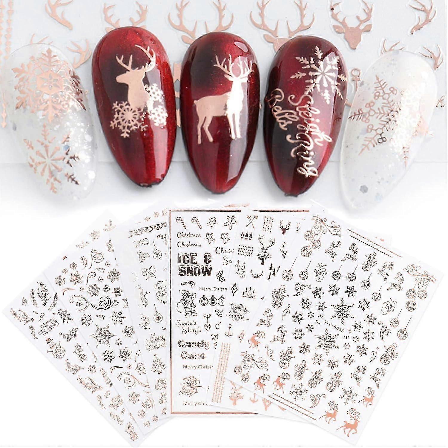 9 sheets Christmas Nail Art Stickers Self-Adhesive Rose Gold Winter Holiday Christmas Snowflake Nail Accessories