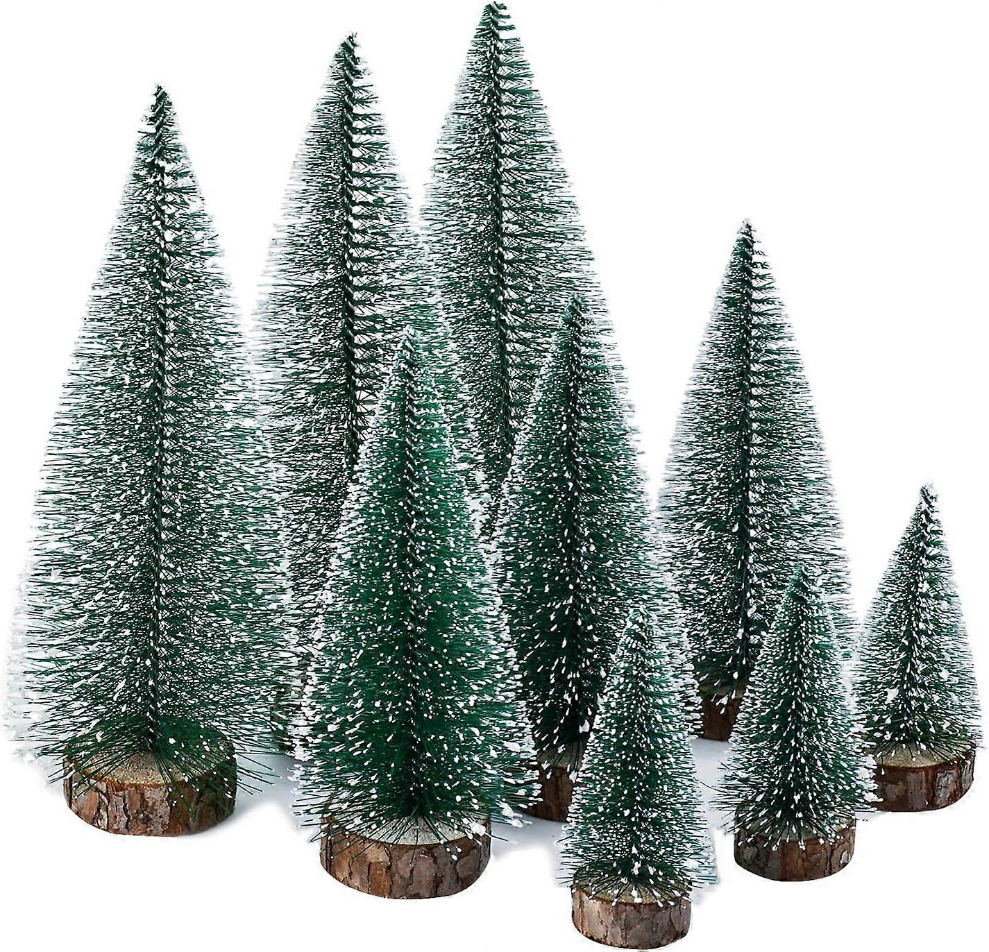 9 Pieces Miniature Christmas Tree, Miniature Christmas Tree, Mini Artificial Christmas Tree with Wooden Bases, DIY, Table / Christmas Decoration, Gift