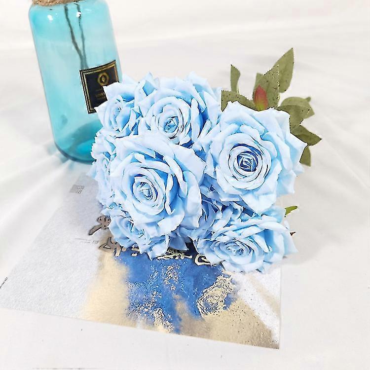 9 Fork Bundle Diamond Rose Simulation Flower Home Living Room Bedroom Garden Wedding Decoration Cloth Fake Flower Bridal Bouquet A