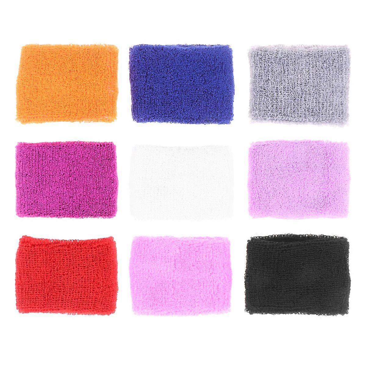 9 Pair of Cotton Sports Wristband Sweat-absorbent Towel Basketball Football Colored Wrist Guard Stretchy Bands for Kids
