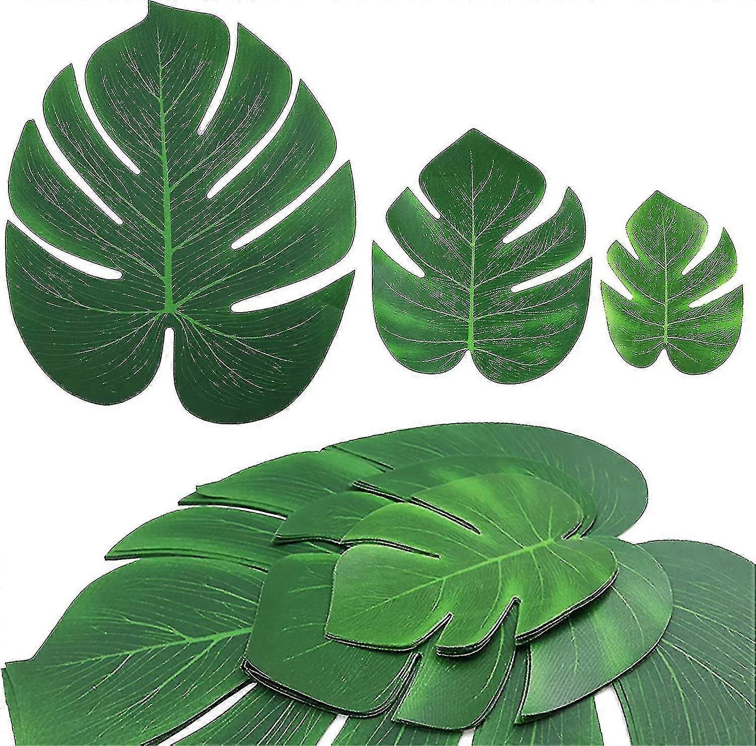 90 Pcs Artificial Tropical Palm Leaves Party Decoration Monstera Fake Large Green Leaf For Hawaiian Party Decorations