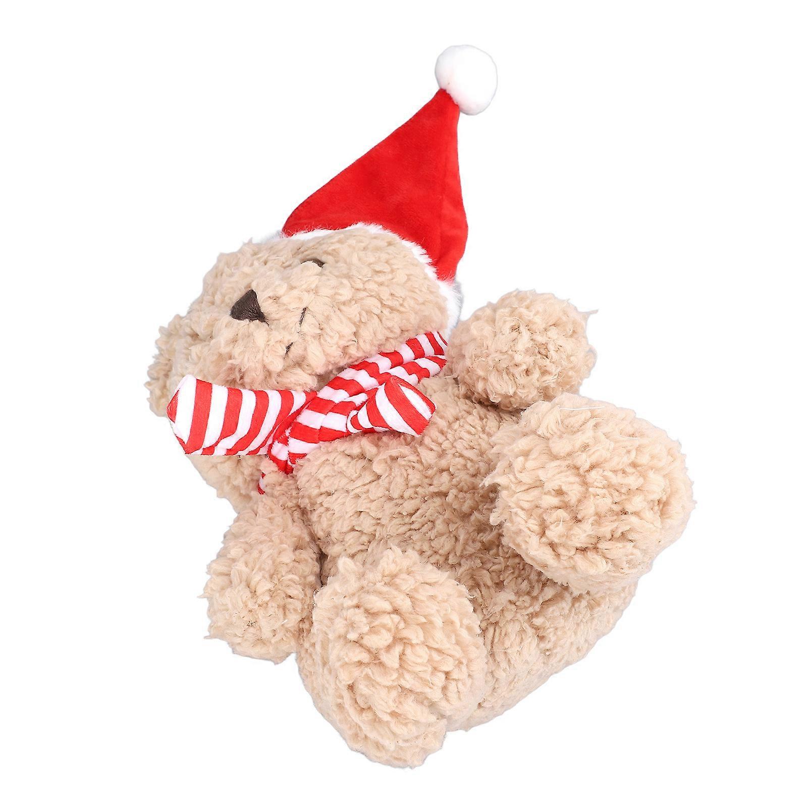 9.06in Xmas Teddy Bear Cute Santa Hat Teddy Bear Xmas Bear Stuffed Animal Plush Toy Doll Decoration for Xmas Red Striped Scarf