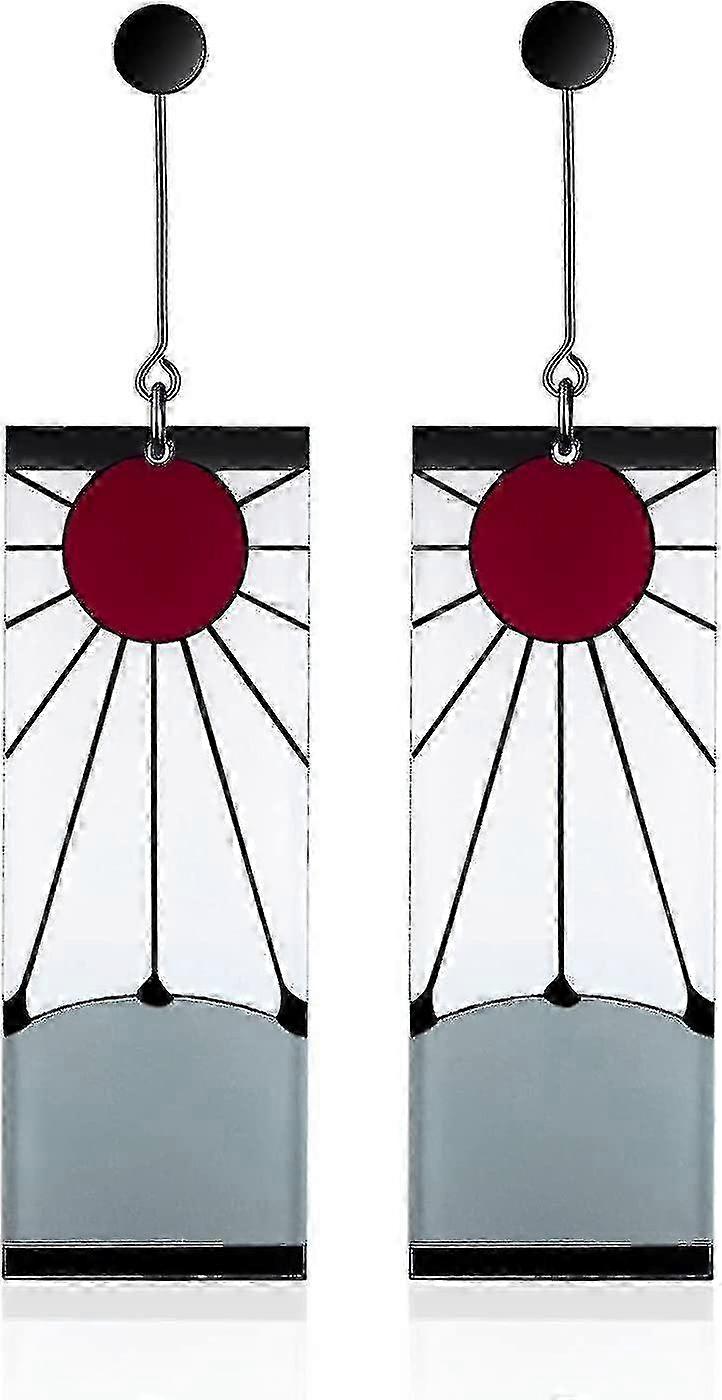 925 Sterling Silver Tanjiro Earrings,anime Demon Slayer Cosplay Tanjiro Black Earrings Ear Clip Kimetsu No Yaiba Hanafuda Halloween For Men Women Earr