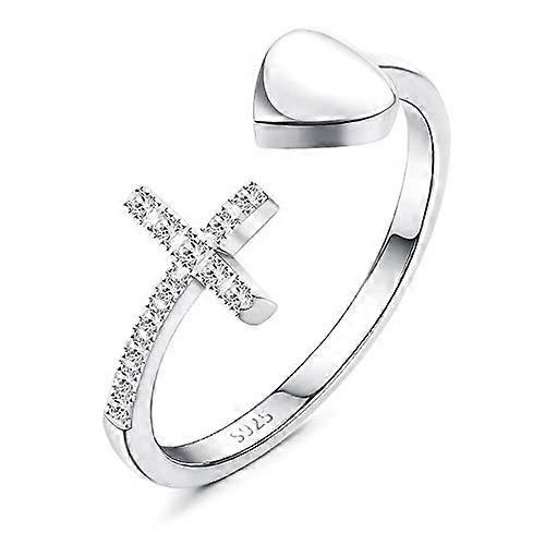 925 Sterling Silver Cross Ring for Women Love Heart Open Ring Cubic Zirconia White Gold Plated Adjustable Ring