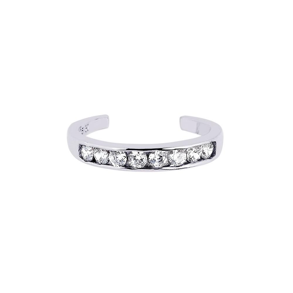 925 Sterling Silver With Rhodium Finish Shiny Cuff Type toe ring With White Cubic Zirconia-toe ring for Women