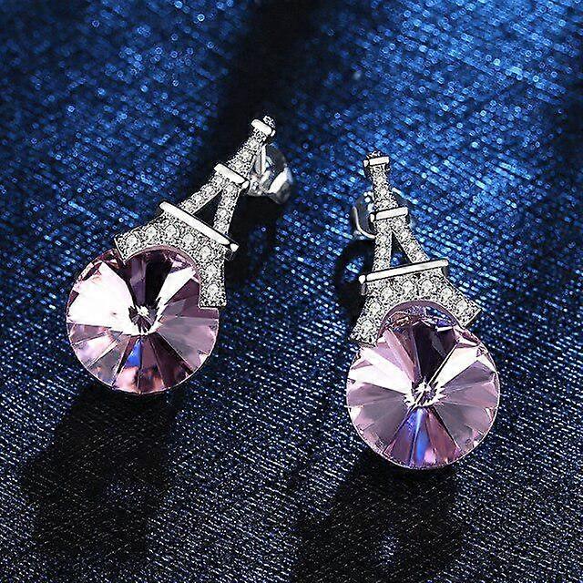 925 Sterling Silver White Pink Crystal Eiffel Tower Stud Earrings for Women Wedding Gift Female Pendientes Mujer Moda