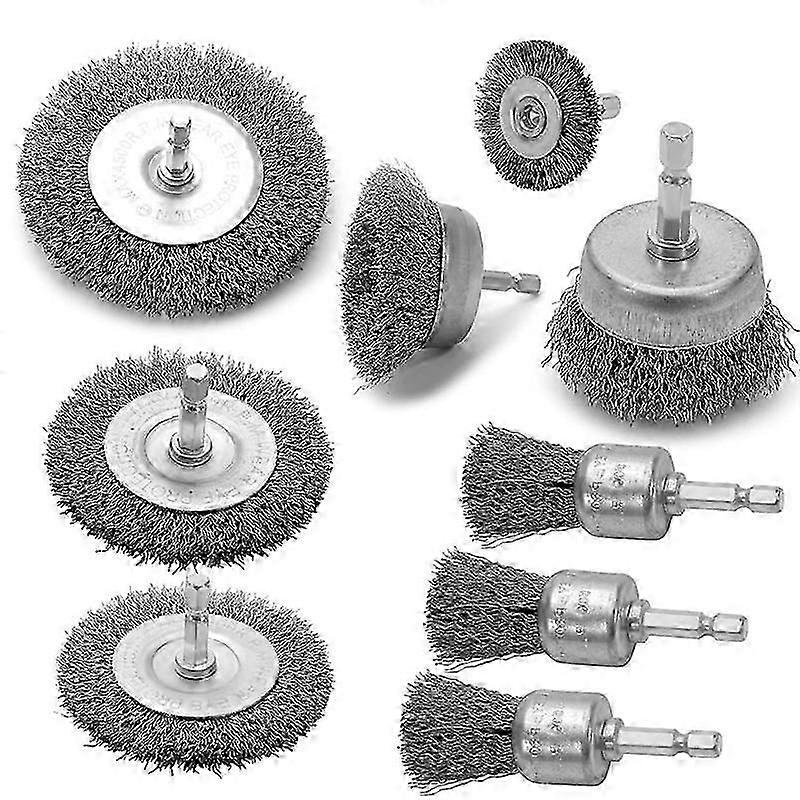 9PC Coarse Crimped Wire Wheel Cup Pen Brush Set for Drill,Carbon Steel Wire Brush with Hex Shank fo