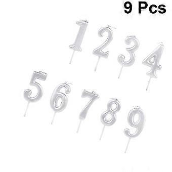9pcs Smokeless Numeral Diy Birthday Candles Cake Topper Candle Digital Cake Candle Creative Cake Insert Decoration (number 1-9 Silver)